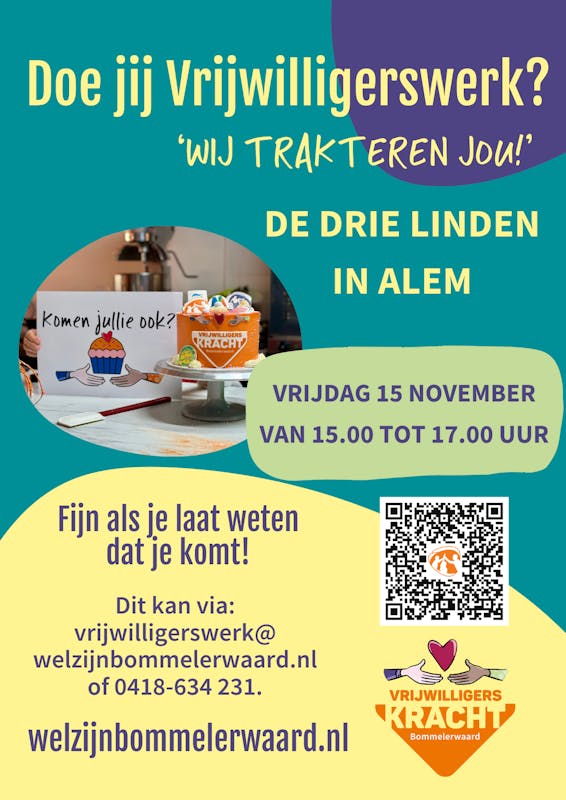 Om alle vrijwilligers van de Bommelerwaard te bedanken, rijdt Welzijn Bommelerwaard tot het einde van dit jaar elke maand met een auto bomvol lekkers naar een andere locatie in de Bommelerwaard. Dit keer is op 15 november Alem aan de beurt. Kan je niet? Op de dag van de vrijwilliger, 7 december, komt Welzijn Bommelerwaard ook in Kerkwijk. Kijk op www.welzijnbommelerwaard.nl/agenda voor meer informatie. Graag aanmelden via of via 0418-634231.