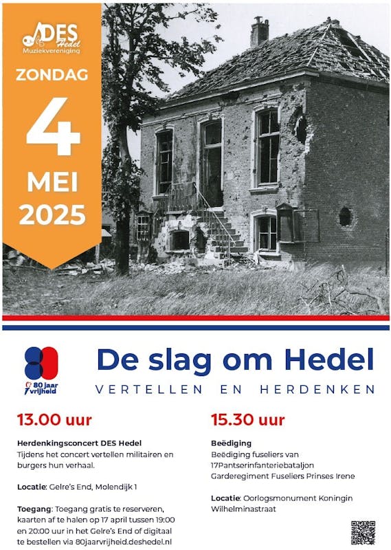 Op zondag 4 mei 2025 organiseert muziekvereniging “Door Eendracht Sterk” een herdenkingsconcert om stil te staan bij deze bewogen jaren. Tijdens het concert wordt de geschiedenis van Operation Orange (de slag om Hedel) verteld, evenals verhalen van gewone burgers uit Hedel tijdens de oorlogsjaren.
