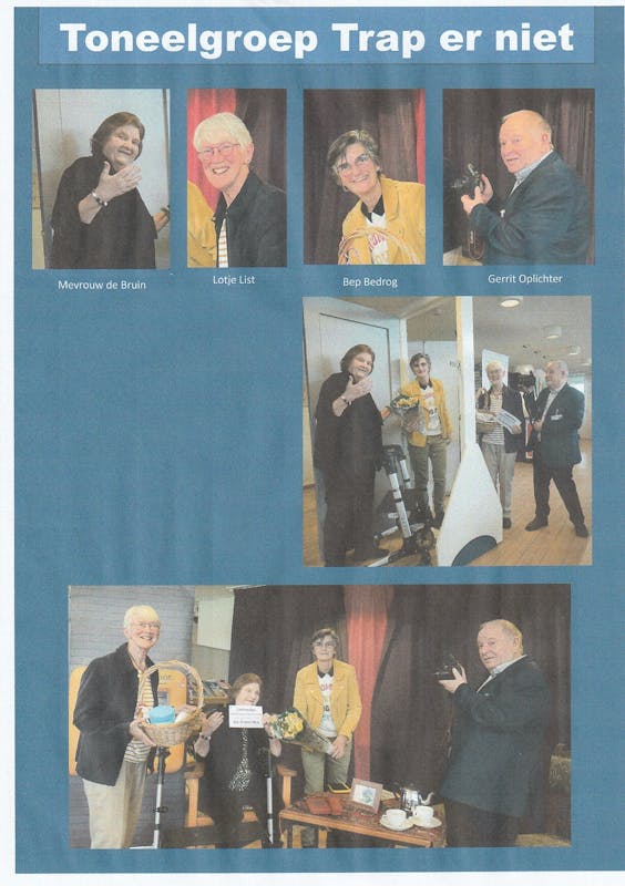 De 83-jarige mevr. De Bruin doet alles in het dialect, zodat ondanks de ernst van de zaken, er gelachen kan worden en er een ontspannen en gezellige sfeer heerst.