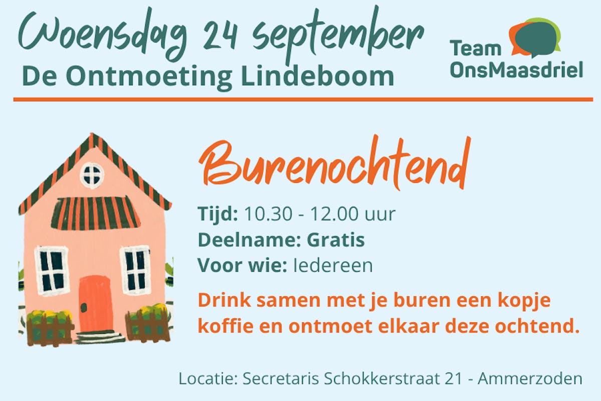 Dus neem je je buurvrouw of man mee deze ochtend en kom elkaar ontmoeten.