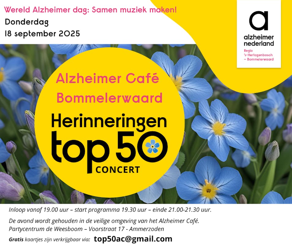 “Alzheimer Café Bommelerwaard Herinneringen top 50 Concert ”.