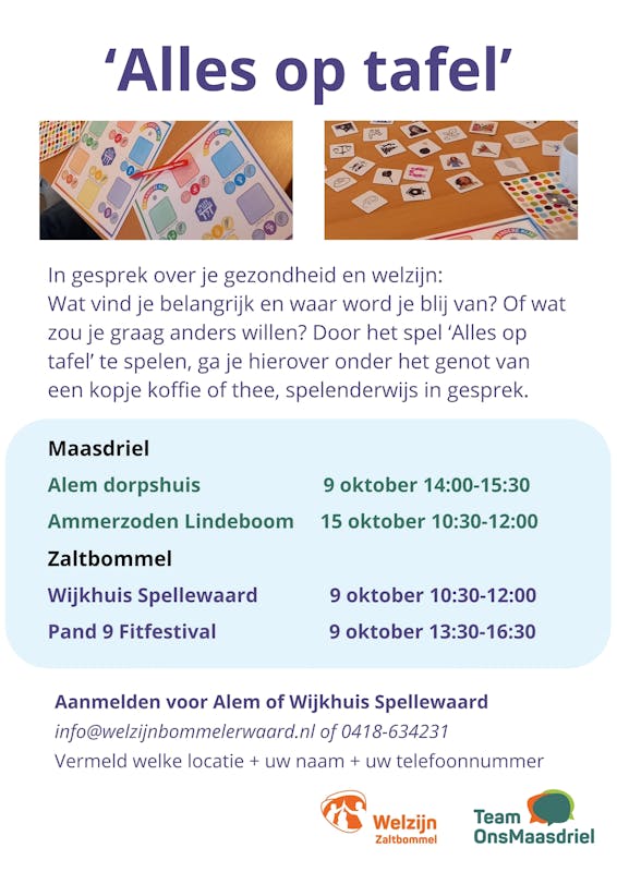 Inwoners en organisaties kunnen bij Team OnsMaasdriel terecht voor alle welzijnsvragen en welzijnsactiviteiten, geboden door beroepskr......