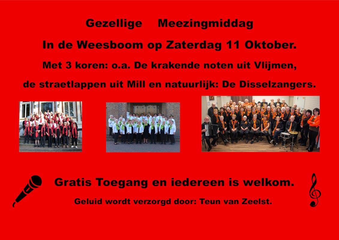Met 3 koren: De krakende noten uit Vlijmen, De Straetlappen uit Mill en natuurlijk: De Disselzangers.