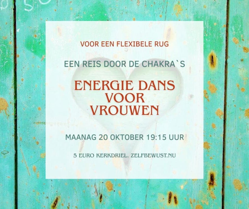 Een wervelende dans om je lichaam losser te maken. Maar ook om kennis te maken met de verschillende energieen in je lichaam. We starten met thee en gaan dan lekker in beweging komen. Margreet neemt je mee in deze reis door je lichaam. Gezelligheid en plezier staan voorop met verschillende muziekstijlen. Vooral de bewegingen maken je bewust van wat er nog wat aandacht mag hebben in je lijf.