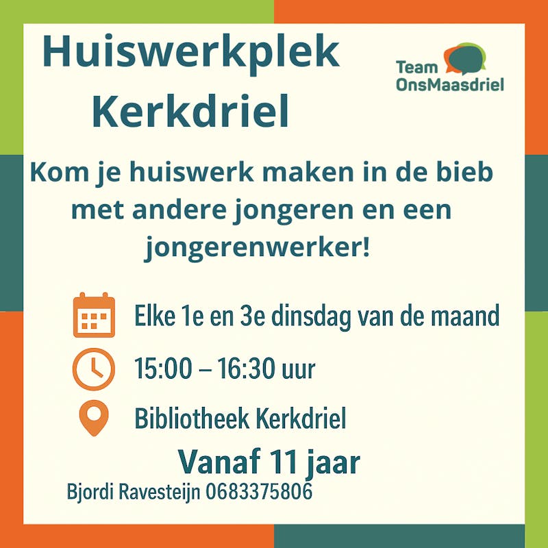 πŸ“Œ Kom langs en ontdek hoe fijn huiswerk maken kan zijn – samen met Jongerenwerk Maasdriel!