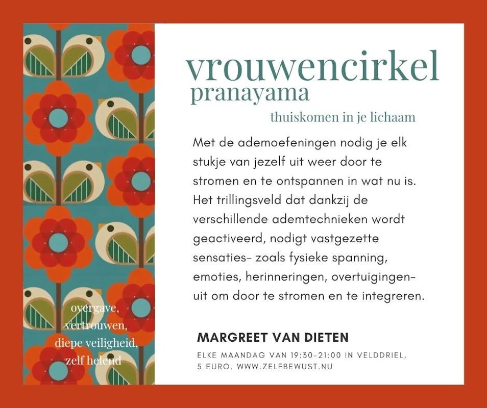 Elke maandagavond ademoefeningen vanuit de yoga. Pranayama genoemd. We variëren ademoefeningen om zaken los te laten maar ook oefeningen om te ontspannen.