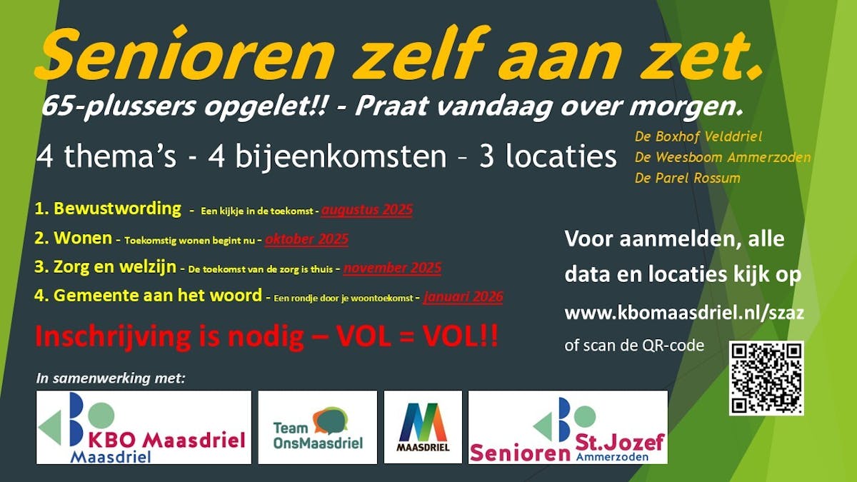De presentaties van de eerste bijeenkomsten staan nu op platform OnsMaasdriel. De senioren zijn zelf aan zet! Deze waren een belangrijk moment voor iedereen en het is nu de tijd om samen het verschil te maken!