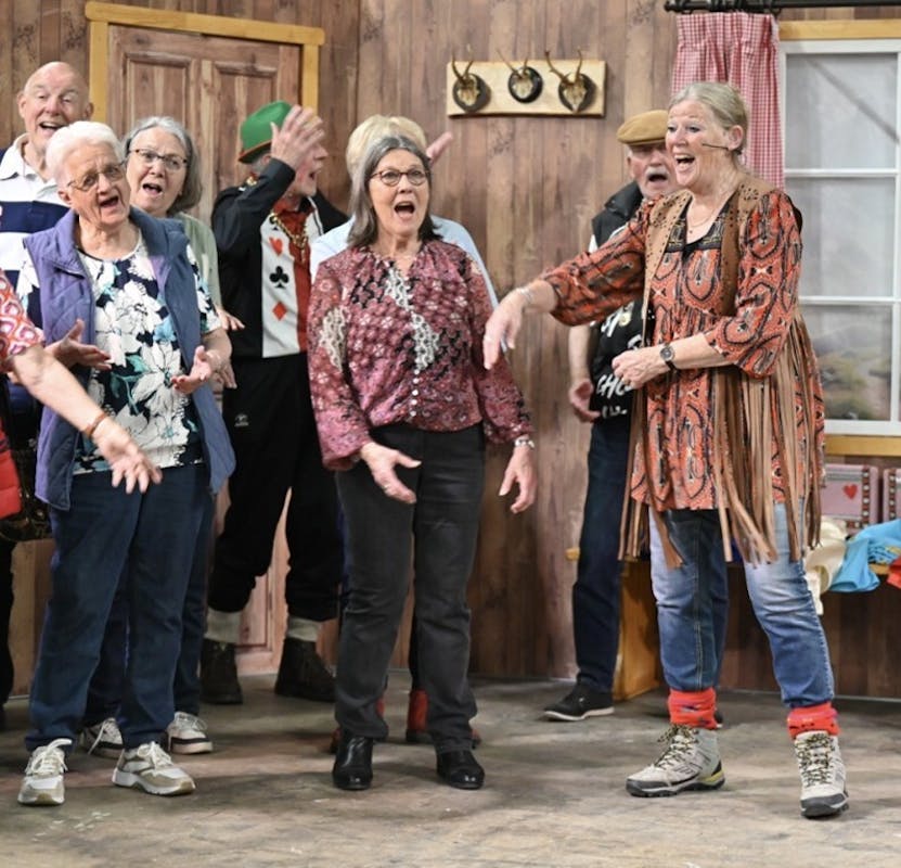 De zangclub heeft een prominente rol tijdens het verblijf in de berg hut onder leiding van zangjuf Elly. U krijgt een brede variatie in liedjes te horen, waarvan vele liedjes bekend zijn bij ons publiek. Eenstemmig, meerstemmig, alsook solo’s en duetten. Een aantal van de dertig liedjes in deze show staan in het programmaboekje afgedrukt en het publiek wordt uitgenodigd deze uitbundig en luidkeels mee te zingen. Onze verwachting is dat de liedjes en sfeer van deze muzikale show bij menigeen mooie (vakantie)herinneringen zullen oproepen! Voor informatie, reserveringen en boekingen: