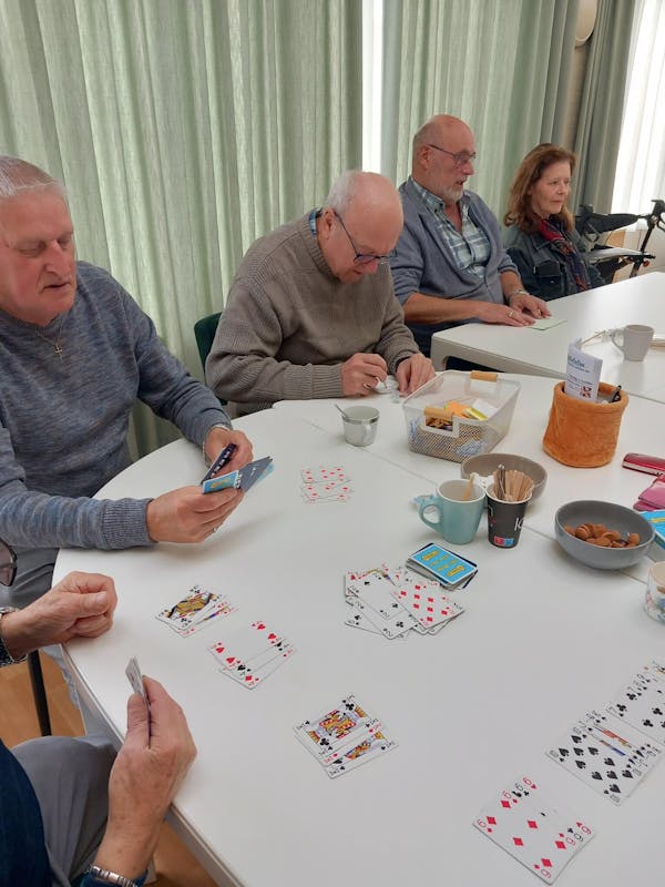 Kopjes, bordjes of potjes, er was keus genoeg. Lekker bezig met elkaar aan tafel, terwijl er ondertussen ook een potje gekaart kon worden , of gewoon gezellig een beetje bijkletsen.