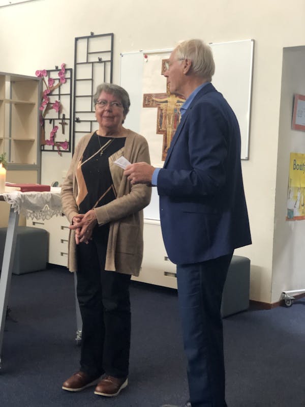 Omringd door trouwe Hedelse parochianen mocht mevrouw Mientje van Herwijnen-Müskens op 2 november na afloop van de Heilige Mis van Allerzielen in basisschool de ‘Pollenhof’ de Franciscuspenning van de Heilige Franciscusparochie in ontvangst nemen.
