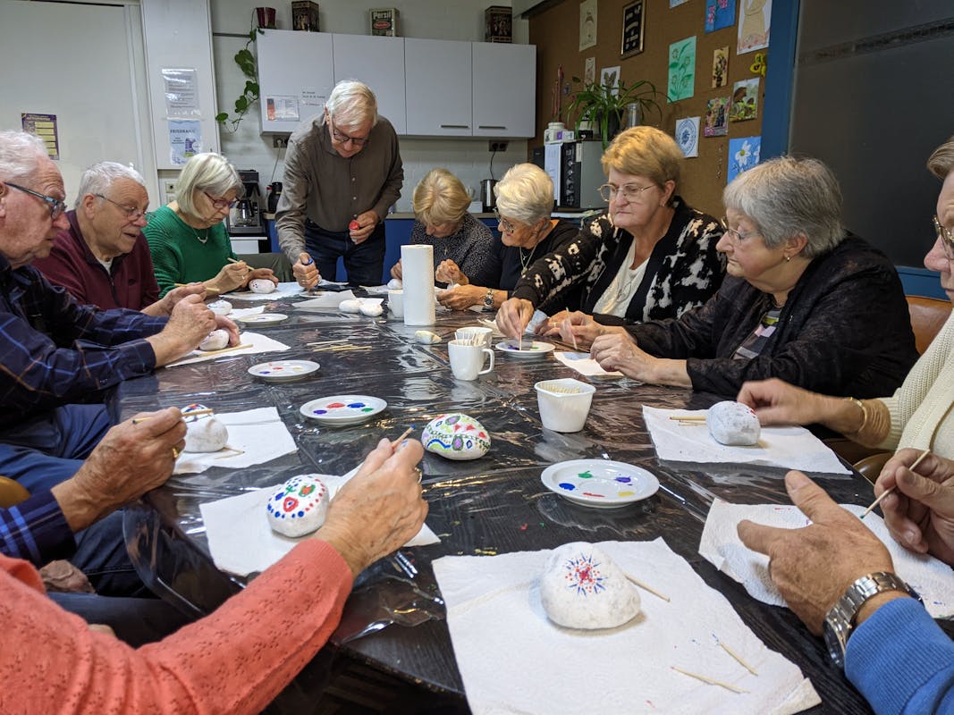 Woensdagochtend 15 oktober stond de koffie en thee weer klaar bij het Odensehuis in Hedel. Twee vrijwilligers hadden een leuke activiteit voorbereid: stenen stippen. Samen met tien deelnemers werden de mooiste stenen versierd. Er werd volop gelachen, gekletst en genoten van elkaars gezelschap.