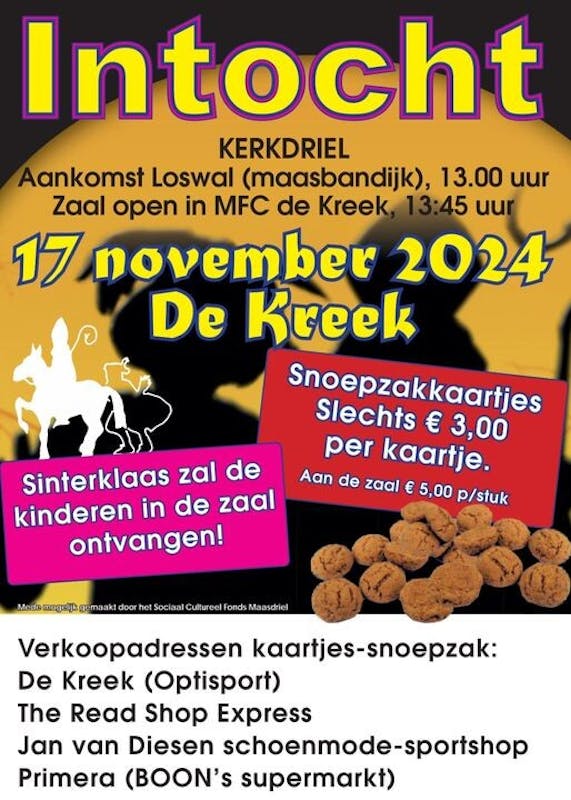 Zorg dat je erbij bent en haal je kaartje op tijd! Sinterklaas kan niet wachten om jullie te zien. Tot dan!