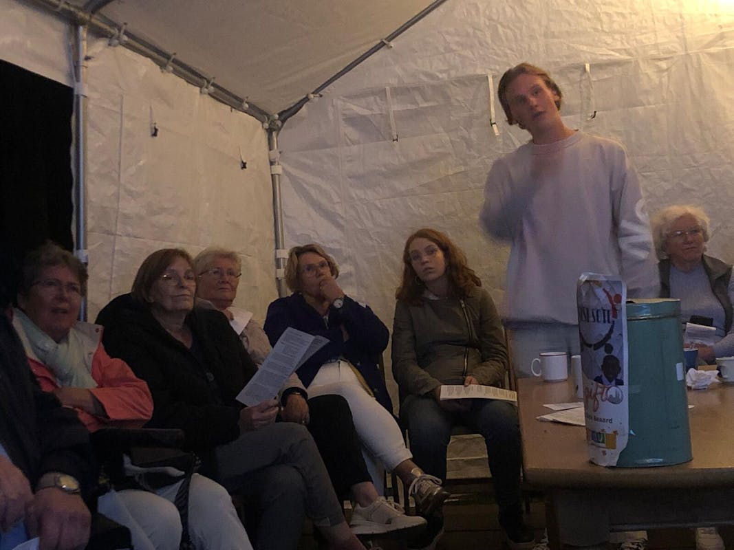 Knus bijeen in een grote tent en een royale opkomst van ouderen en jongeren, waren allen ogen en oren gericht op een bevlogen jongere, "Dirk Beaard”.