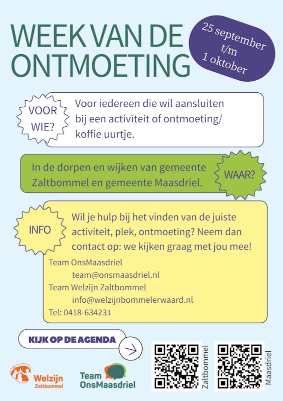 De Week tegen Eenzaamheid stond ook dit jaar in het teken van verbinding en ontmoeting. Vanuit Team Zaltbommel en Team OnsMaasdrie l zijn er verschillende activiteiten geo...
