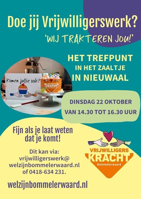 Op 22 oktober zijn wij in het zaaltje bij Trefpunt Nieuwaal. Kom je ook langs voor een kopje koffie of thee met wat lekkers?